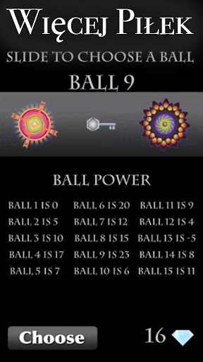 Możesz wybrać inne piłki o różnych zdolnościach skoku: niektóre skakałyby wyżej, inne skakałyby niżej. W sekcji piłki możesz wybrać i odblokować 15 różnych piłek o różnych właściwościach. Wszystkie piłki można odblokować za pomocą diamentów (w grze) lub zakupów w aplikacji.