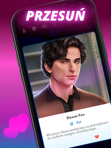 Przesuń w prawo, by znaleźć matcha, flirtuj i eksploruj rodzącą się między Tobą a Twoim wybrankiem chemię! Szukasz łatwego, opartego na zabawie romansu, a może chcesz się zaangażować i zbudować poważny związek? To Twoja historia!