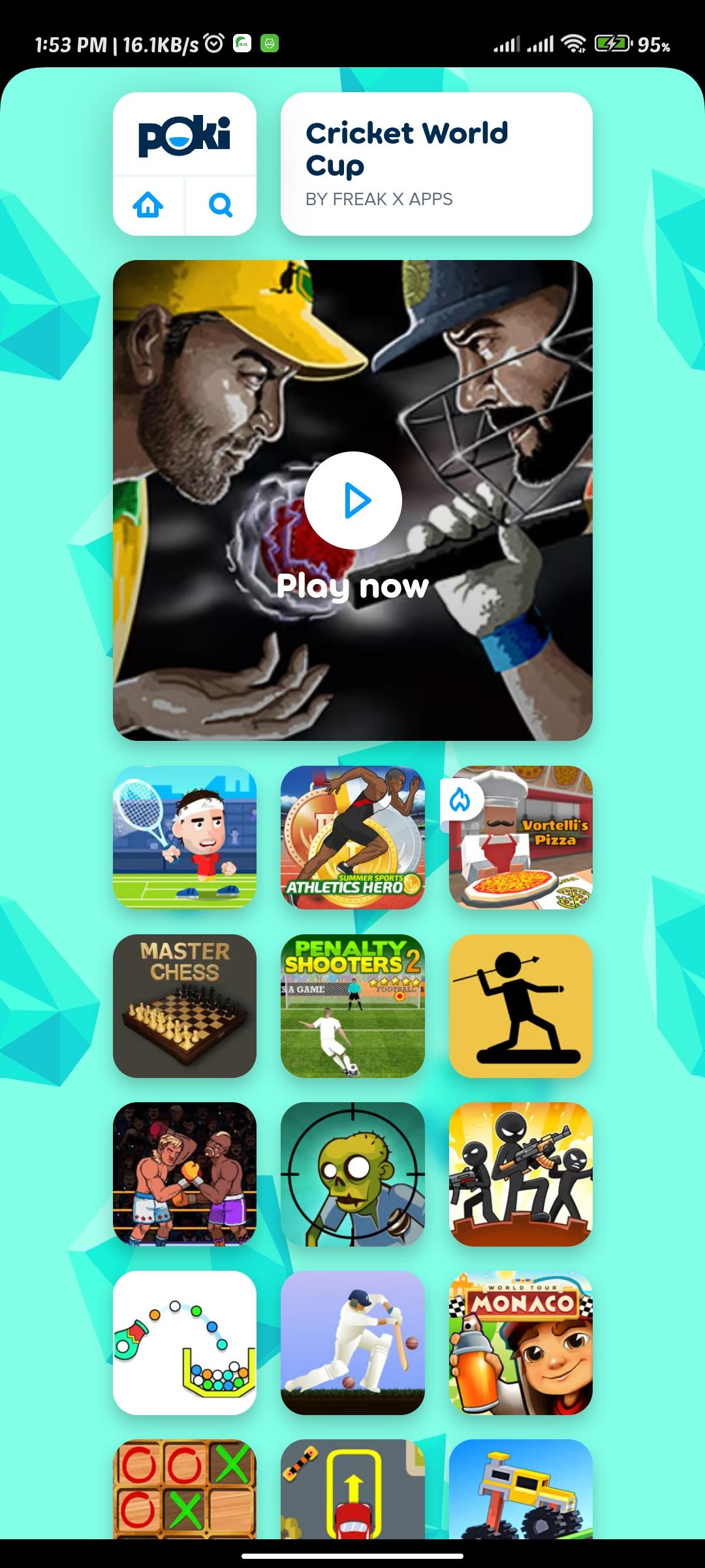 Play all sports game includes cricket, football games and more. Matching games are very cool games. Play free android games anytime anywhere.