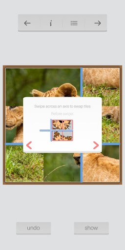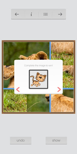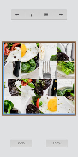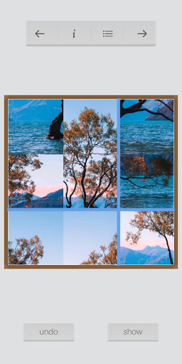This app offers 3 variations of puzzles: 9 piece, 16 piece and 64 piece variations.