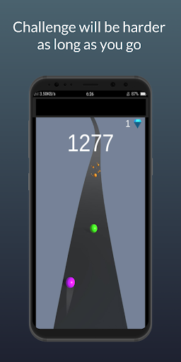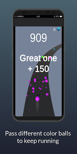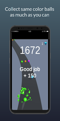 Once the game will start the user will have the control access of the main ball. That ball will move automatically towards forward side & the user can swipe it to right and left side by simply touching the ball in mobile device. The control access for desktop is “A” & “D” or “Right” & “Left” arrow key for the same. Lots of obstacles in the form of different coloured ball will come from front side towards opposite direction which need to pass by moving right & left the main ball. The main ball need to hit with same coloured ball to get score. Each time hitting same coloured ball will provide 150 points. As long as the path will be passed more the hurdle levels will become harder. In between booster diamonds will come which will give you more points that need to collect to score high.