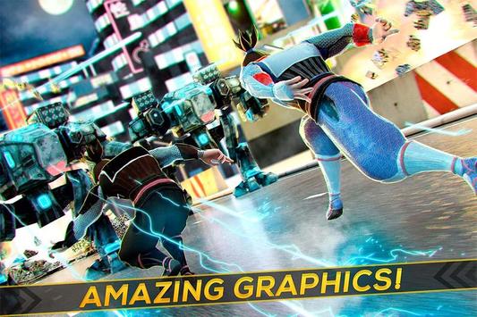 You are a ninja, a professional killer trained in martial arts with a difficult mission: Defeat the shooting robots of Doctor Death who wants to take Tokyo!