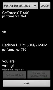 Are you a graphic card geek? This app will challenge you guessing which gpu is faster. The gpu listed here and its performance is based on http://videocardbenchmark.net/gpu_list.php.