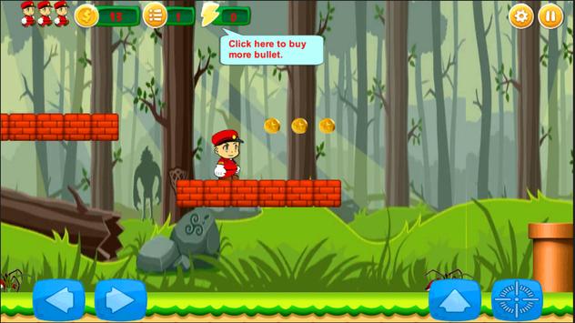 Jungle World of Mario is the best game in adventure style. A super boy is lost in the jungle and please help him to go home. On this trip, he can meet so many monsters in jungle, but he can find flower to get weapon to destroy them.