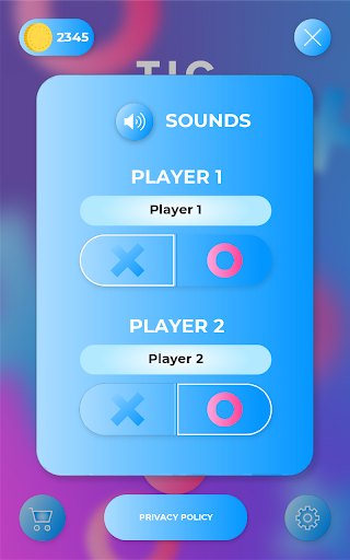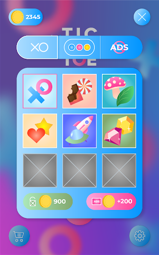 • 6 * 2 różnych motywów (skórki gry) - Możesz wybrać krzyże i kółki, również można wybrać wspólną gier. Spróbuj stworzyć własną zmienność! Dodajemy nowe motywy z przyszłymi aktualizacjami;