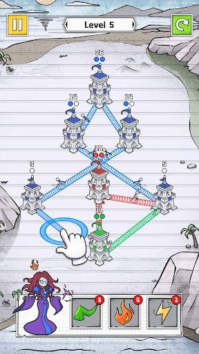 - Przeciągnij, aby nawiązać połączenia i rozmieścić żołnierzy.Stuknij elementy, aby użyć różnych umiejętności.