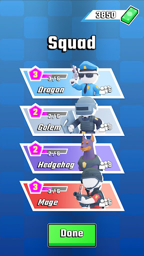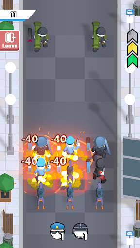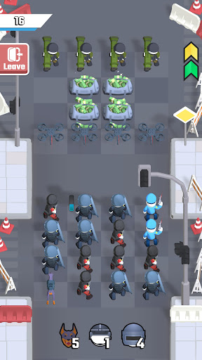 Dopasuj i ulepsz swoją drużynę policyjną, aby wygrać każdą bitwę.Twoja załoga z dziesiątkami innych żołnierzy jest gotowa walczyć o ciebie, dowódca!Odblokuj i wyrównaj wszystkich gliniarzy, aby zbudować najsilniejszą armię na świecie!