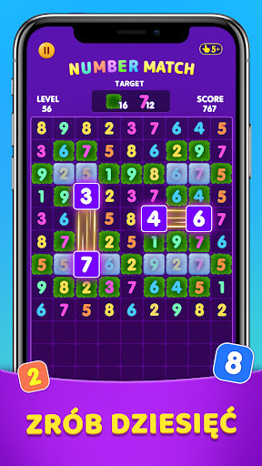 Miliony ludzi na całym świecie są zakochane w podmuchu liczb - dopasuj dziesięć Crush. Jeśli lubisz Sudoku, Nonogram, Numberzilla, krzyżówki lub inne gry liczbowe, ta gra jest dla Ciebie idealna. Podejmij wyzwanie i przeszkocz swój mózg teraz! Zagraj w tę grę liczbową w dowolnym miejscu i w dowolnym momencie!