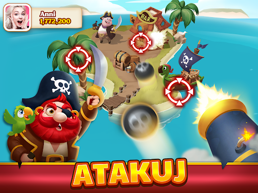 Możesz napadać na innych piratów i kraść ich monety. Dobry sposób na gromadzenie szczęścia! BUM! BUM! BUM! Armaty wskazują na wyspy! Użyj armat, aby zaatakować swojego partnera i zemścić się na tych, którzy cię zaatakowali.