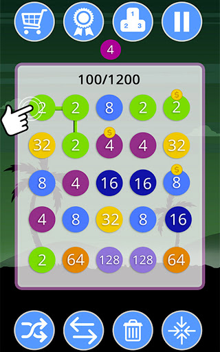 248… is a super fun and easy game to play. You just need to connect the dots with the same numbers vertically or horizontally. Your numbers chain will then merge and pop into a new dot with a new number (this new number will be a multiple of the dots you just connected…)