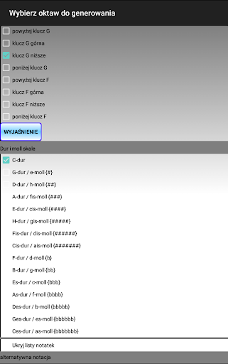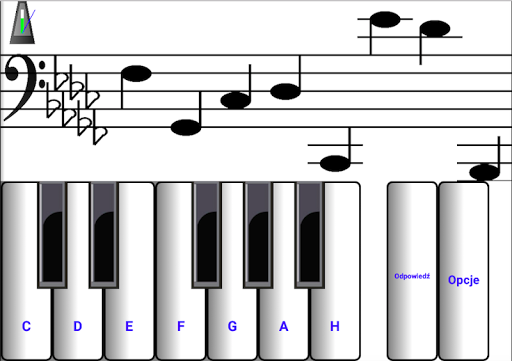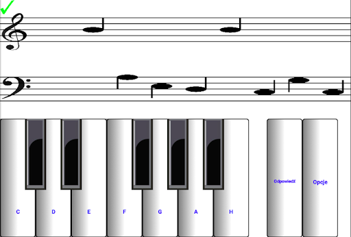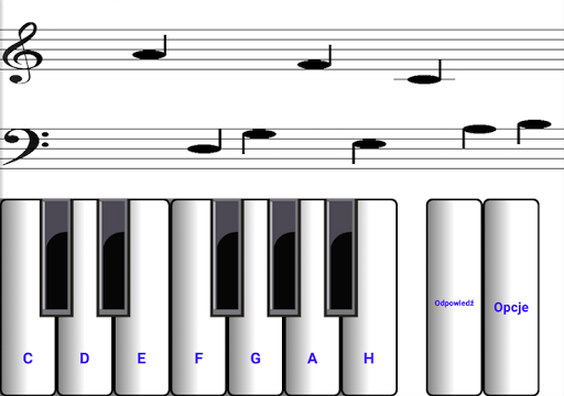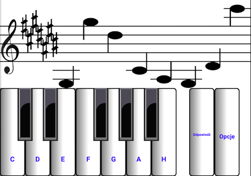 Dowiedz się czytać nuty, w klucz G i klucz F. Nuty powyżej i poniżej pięciolinia. Obejmuje 6 oktaw. Dotyczy każdego instrument. Nuty generowane losowo i nie ogranicza się do zestawu powtarzanej. Przełączanie między klucz jeszcze więcej zabawy. Odpowiedź dla początkujących. Początkujący ustawić tempo ograniczając sekcję oktawa nauczyć. Dur i moll skale (-is i -es). Polsko notacja jak C D E F G A H. Dźwięk może być wyciszony Piano. Obejmują testów ocena i statystyki wydajności. Świetne dla telefonów. Idealne dla tabletek komputerowych.