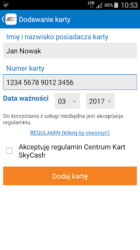 2. Zarejestruj się (lub zaloguj, jeśli masz konto) u operatora płatności SkyCash, podając imię, nazwisko oraz numer telefonu, i ustal osobisty PIN.