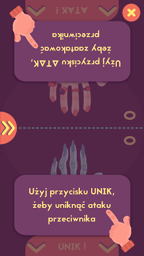 ✔ Bądź ostrożny – jeśli wykonasz unik za dużo razy, twoja dłoń zmieni się w kamień i nie będziesz mógł uniknąć kolejnego ataku.
