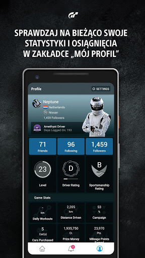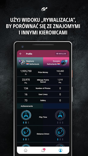 Oficjalna aplikacja Gran Turismo Sport pozwoli ci połączyć się z funkcjami GT Sport z każdego miejsca. Zaloguj się używając danych z PlayStation™Network.