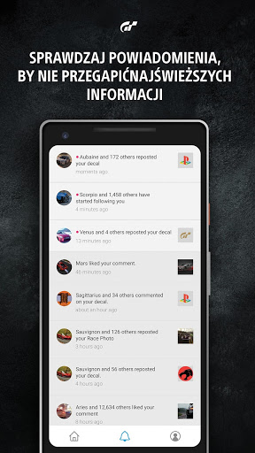 Miliony graczy GT Sport robi wspaniałe zdjęcia samochodów i krajobrazów, tworzy odjazdowe naklejki i dzieli się emocjonującymi historiami z wyścigów. Przeglądaj je w swoim spersonalizowanym CENTRUM AKTYWNOŚCI i komentuj, lajkuj lub udostępniaj swoje ulubione. Zamieść AKTUALIZACJĘ STATUSU, by dać znać znajomym i obserwującym co u ciebie słychać.