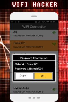 you can show your friends that Wifi Password hacker is a application that help you hack password of a wifi network. WiFi Password Hacker makes it look like you can hack any WiFi network. It can pretend hacking into secured wifi network using WEP, WPA2 or AES encryption and so on. It just presents a fancy animations and nothing else. So it is not harmful to the network. You can trick your friends that you can hack WEP password , WPA2 Password and AES password also . It makes you look like a proficient hacker and a technical genius. This is a very delightful prank to play on your friends. This app will work like WEP password generator and will show you some fake password of a wifi around you. You can pretend that you just hack wifi and got a free wifi on your phone . This wifi hacking is just for prank it will just show you list of wifi networks around you and pretend to be hacking WEP, WPA2 or AES.You can use it to trick your friends that you can hack into their private wifi network. Just run this tool in their house, the wifi scanner will detect all the wifi hotspot no matter whether the signal is good or not. And then select their wireless wifi id. Fake password will be displayed, but they will think that you have just broken into their network! Watch the reaction on their scared face and have a lot of fun.