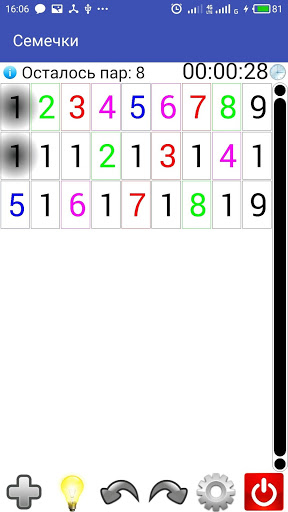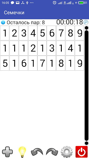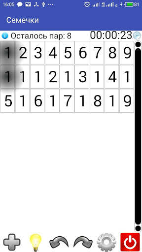 Klasyczna realizacja gry "Nasiona" (lub Tsiferki): Konieczne jest pozbycie się wszystkich numerów na polu gry, usuwając pary tych samych cyfr lub par, które dają szereg dziesięciu stojących w pobliżu, które nie zawierają inne liczby w przestrzeni (pionowej lub poziomej) między sobą.Jeśli nie ma kombinacji, aby zmniejszyć, a następnie wszystkie pozostałe numery są odprowadzane z ostatniej komórki.