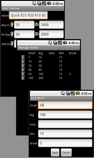 This simple to use poker clock, lets you define multiple poker tournament structures in an intuitive environment.