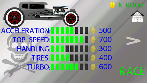 Each car is fully up-gradable in the categories of acceleration, speed, handling, tires and turbo.