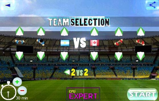 ✯✯Multiplayer: for 2 to 4 players on the same screen. select each team and the country they represent. select 2vs2 or 4vs4 you can choose the color you want for each soccer player. Choose the playing time remember that in the middle of the game there will be a break so that the players do not kick the ball. the game will return in a few seconds.