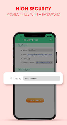 Zip files with passwords. High security, data is highly protected with a password to secure compressed files according to AES 128 and AES 256 standards
