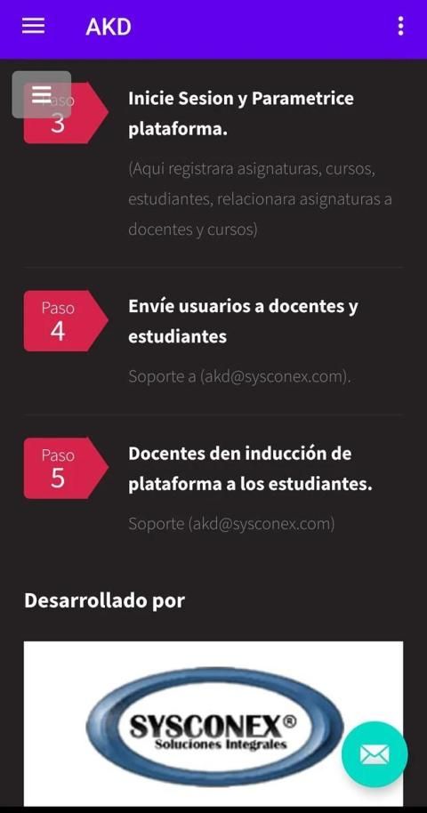Platform that allows communication between teachers, students and parents. In Akd-comunicate you can create the courses and their subjects, as well as control the activities and schedules; Here you can ask and receive answers to your questions in an easy and organized way. Students will be able to upload the activities carried out and verify their results with the recommendations that the teacher has indicated. With Akd-comunicate the school will be able to post their news and announcements, the teacher will be able to answer easily the doubts that their students have, they will also verify the respective schedule and the student will be notified about when they should deliver the scheduled activities. Akd-comunicate more than an APP will be a personal assistant for all its users.