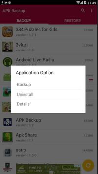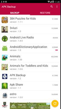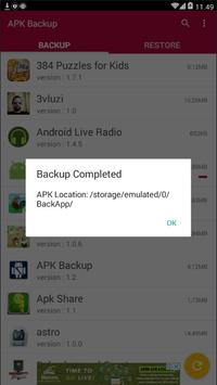 Backup your android application by simple way, and store it on your storage system, for further usage. Your file will be stored on folder 'BackApp'.