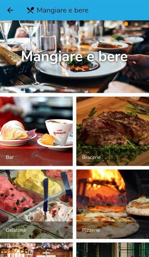 - possibilità di visualizzare i contenuti geolocalizzati (attività, bancomat, elementi di interesse sul territorio...), organizzati per categoria, assieme su mappa