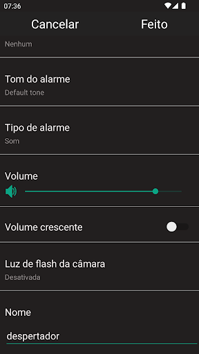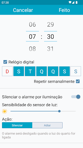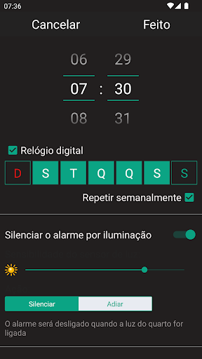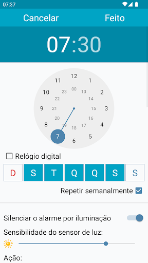 ✓ Configure a hora em que permanecerá a tocar o alarme