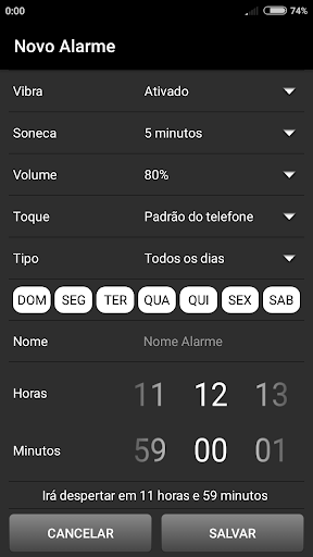Por ser focado na simplicidade, os alarmes são facilmente configuráveis e editáveis, sendo que é muito fácil adicionar um alarme, pois você terá vários tipos de alarme pré-definidos bastando o usuário escolher um destes tipos ou se preferir você pode criar e customizar um alarme do seu jeito adequando as necessidades do dia a dia.