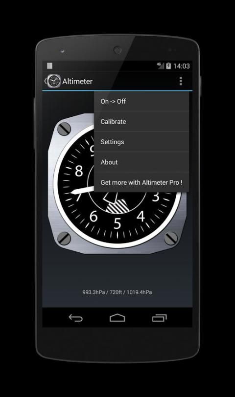 (*) These functions require a barometric sensor in your android device (tablet like Motorola Xoom, Google Nexus ics 4, Samsung Note, ...).