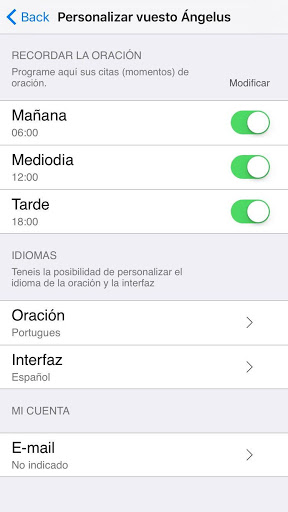 escolha os seus horarios de oração; envia-nos suas intenções para as Irmãs da Assunção em Lourdes; escolha quando fazer tocar os sinos; escolha o seu idioma de oração (Francês, Latim, Inglês, Espanhol, Português); e do seu aplicativo (Inglês, Francês, Espanhol, Português).