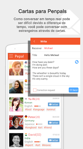 Você pode se corresponder com os amigos virtuais estrangeiros que você quiser, e enviar e receber notícias por meio de cartas.
