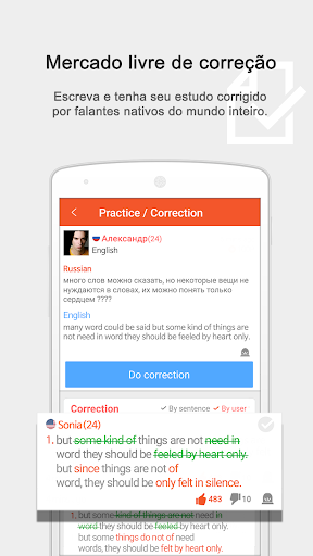 Se você registrar um artigo depois de participar das lições de idiomas, diversos nativos de todo o mundo farão correções gratuitas para você.