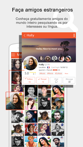 Ao pesquisar pessoas por idioma ou interesses, você poderá conhecer pessoas