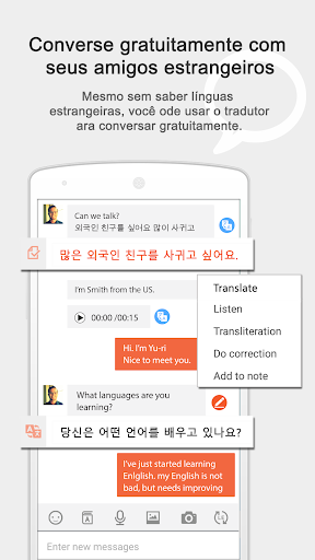 Mesmo se você não conhecer a outra língua muito bem, você pode se comunicar com os estrangeiros por meio do bate-papo com funções de tradução.