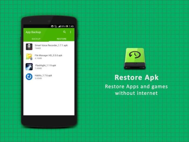 App Backup Restore – Share cannot back up or restore contacts or apps data, it’s only back-up apk files.