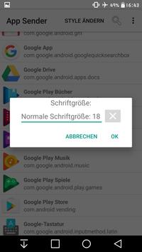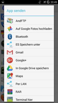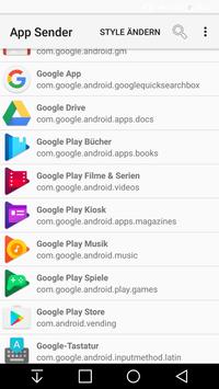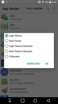 With this you can send all your installed apps (via Bluetooth, ...) to other phones. Or you can save the chosen app on your SD Card. You also can search an app, can change your style of App Sender or uninstall the chosen application. It contains a small submenu, if you longclick an application. Else it shows on a short click the menu with all functions. You do not need superuser rights for this. The styles are: light theme,