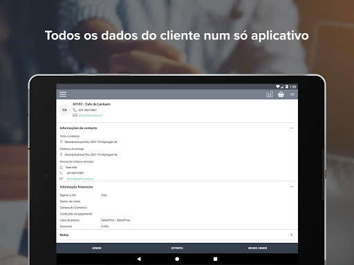App4Sales é o aplicativo perfeito para os seus representantes de vendas, para receber encomendas de pedidos de forma rápida, é utilizado e usado por milhares de representantes de vendas. A integração com o sistema ERP torna possível acessar o banco de dados completo do cliente e registrar novos clientes. Os representantes só têm acesso aos seus próprios clientes com suas credenciais de login pessoal. Pesquise no catálogo digital e use o lookbook para dar aos seus clientes uma boa impressão de todos os seus itens. Adicione itens ao pedido, carregue listas de preços específicas do cliente e permita que os clientes assinem o pedido no seu dispositivo Android. Após o envio do pedido, ele será criado automaticamente no seu sistema ERP. A inserção manual de pedidos no seu sistema ERP não é mais necessária com o App4Sales.