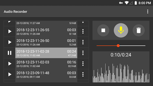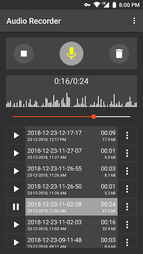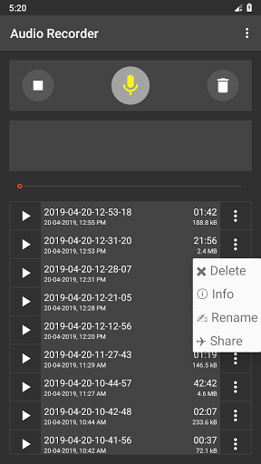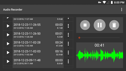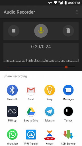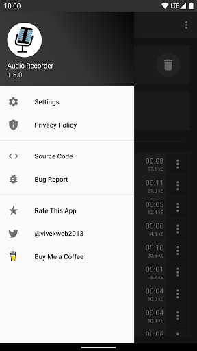 Facilmente compartilhe suas gravações com opção de compartilhamento. Defesa facilmente a gravação contínua usando o botão Excluir. O registro pode ser Pausa em dispositivos com API> 24 (nougat) e acima.