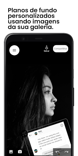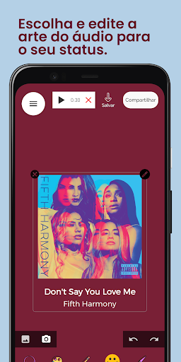 Você já desejou poder postar facilmente aquela parte de uma música ou áudio que você acha incrível? Bem, o Audio Status Maker permite que você faça exatamente isso. Com o Audio Status Maker, você pode escolher ou gravar áudio de sua biblioteca, cortar o áudio para escolher a parte que deseja compartilhar e, em seguida, convertê-lo em um status de áudio escolhendo entre várias opções de fundos disponíveis no aplicativo ou usando sua própria imagem personalizada como plano de fundo. Você pode então mostrar sua criatividade adicionando texto, adesivos, filtros ou desenhos em cima de seu status para dar uma vantagem extra. Você pode compartilhar esse status no WhatsApp ou em qualquer outra plataforma de mídia social e funcionará! Experimente. Já se foi o tempo em que você precisava cobrir a câmera apenas para se postar cantando.