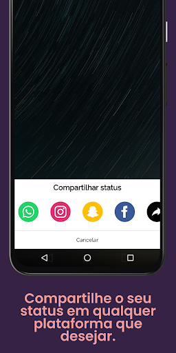 Inclui vários fundos nítidos, brilhantes e coloridos para o seu status. Também permite criar um status usando suas próprias imagens personalizadas da galeria ou câmera como plano de fundo.