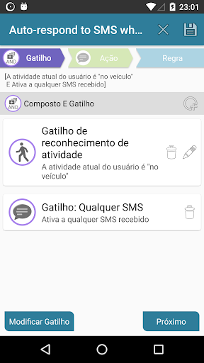 • Gatilho do sensor - utilizar todos os sensores do seu dispositivo como um gatilho para uma ação desejada. Isso inclui o uso de todos os sensores suportados pelo Android - Accelerômetro, Luz, Proximidade, etc. • Trigger Calendário - Monitorar eventos em seus diferentes calendários de