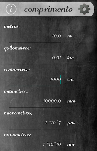 Durante a escrita a conversão é seguida e automaticamente mostra todos os valores das outras unidades.