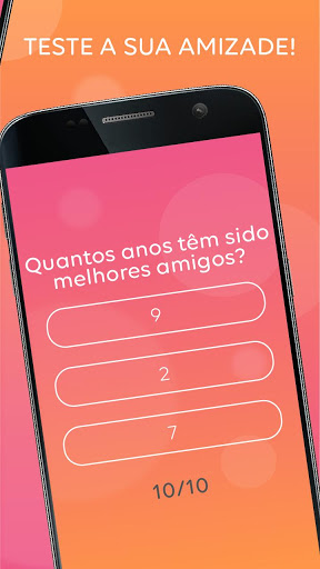 Nesta incrível trivia, calcularemos quanta compatibilidade você tem com seu melhor amigo. Podemos garantir que os resultados irão surpreendê-lo e daqui você verá seu amigo de maneira diferente.