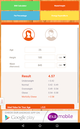 Se você não tem certeza, o seu peso ou cintura são as corretas, uso do aplicativo e cheque.