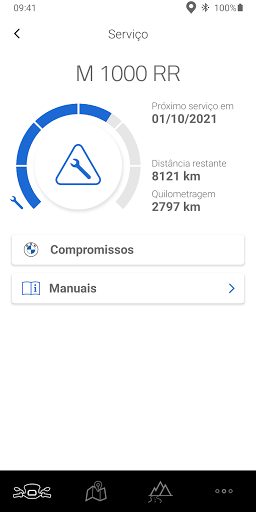 • O aplicativo é parte da BMW Motorrad Connectivity e só pode ser utilizado ativamente junto com veículos que tenham um display TFT. A conexão entre smartphone, veículo e (se disponível) sistema de comunicação é feita sem fio por Bluetooth e as funções podem ser operadas pelo multicontrolador do guidão. Para usar as funções de música, telefonia e orientações de navegação, recomenda-se utilizar o sistema de comunicação BMW Motorrad.