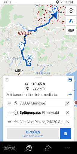 • Navegação específica para motor com critérios como "Rota com curvas"