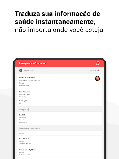 • Traduza instantaneamente as informações sobre a sua saúde em vários idiomas