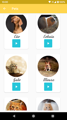 - Diversos animais e seus sons, de maneira engraçada e original, separados em diferentes categorias: animais selvagens, de fazenda, domésticos, etc.